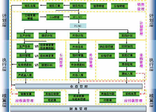 將客戶訂單及銷售預測通過預測均化及沖銷、計劃方案設置、MPS計算,同時結合計劃訂單的確認投放、物料替代、計劃調整建議,編制企業(yè)的主生產(chǎn)計劃(MPS)。物料需求計劃(MRP)以主生產(chǎn)計劃為來源,分解需求到下級物料,編制企業(yè)采購計劃和生產(chǎn)計劃。